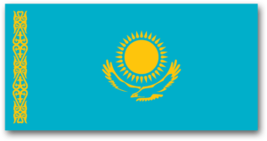 Изображение солнца, его лучей, орла и национального орнамента – цвета золота. Соотношение ширины флага к его длине – 1: 2.                        Государственный флаг независимого Казахстана был официально принят в 1992 году. Его автором является художник Шакен Ниязбеков.