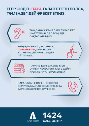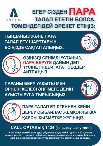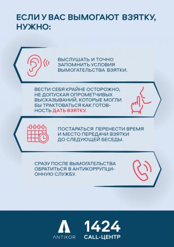 Коррупционное правонарушение – имеющее признаки коррупции противоправное виновное деяние (действие или бездействие), за которое законом установлена административная или уголовная ответственность. Если Вам предлагают взятку или у Вас вымогают взятку! Уголовный кодекс Республики Казахстан предусматривает два вида преступлений, связанных с взятками: — получение взятки (ст. 366); — дача взятки (ст. 367). Это две стороны одной преступной медали: если речь идет о взятке, это значит, что есть тот, кто получает взятку (взяткополучатель) и тот, кто ее дает (взяткодатель).